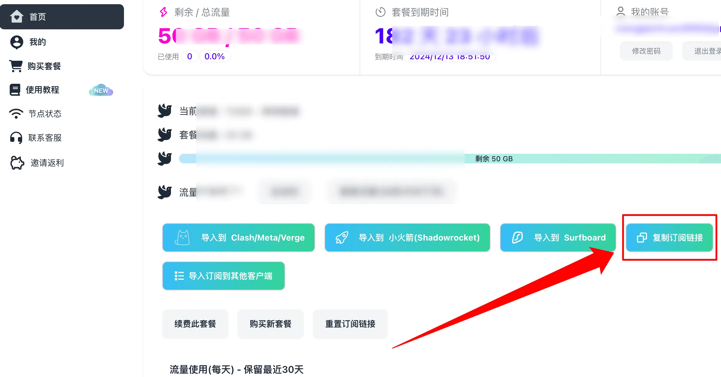 在网站首页,点击 导入到Clash/Meta/Verge 按钮,浏览器非弹窗提示,点击打开即可;